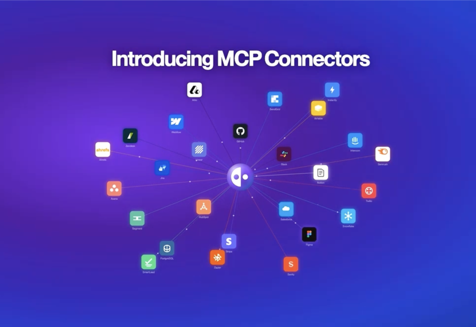 MCP (Model Context Protocol) is an open standard for connecting AI agents to external systems. These aren't background syncs or read-only data pulls. Each connector is an active bridge. Your agent can reach into these systems, pull data, write to them, and trigger real actions, without leaving the conversation.