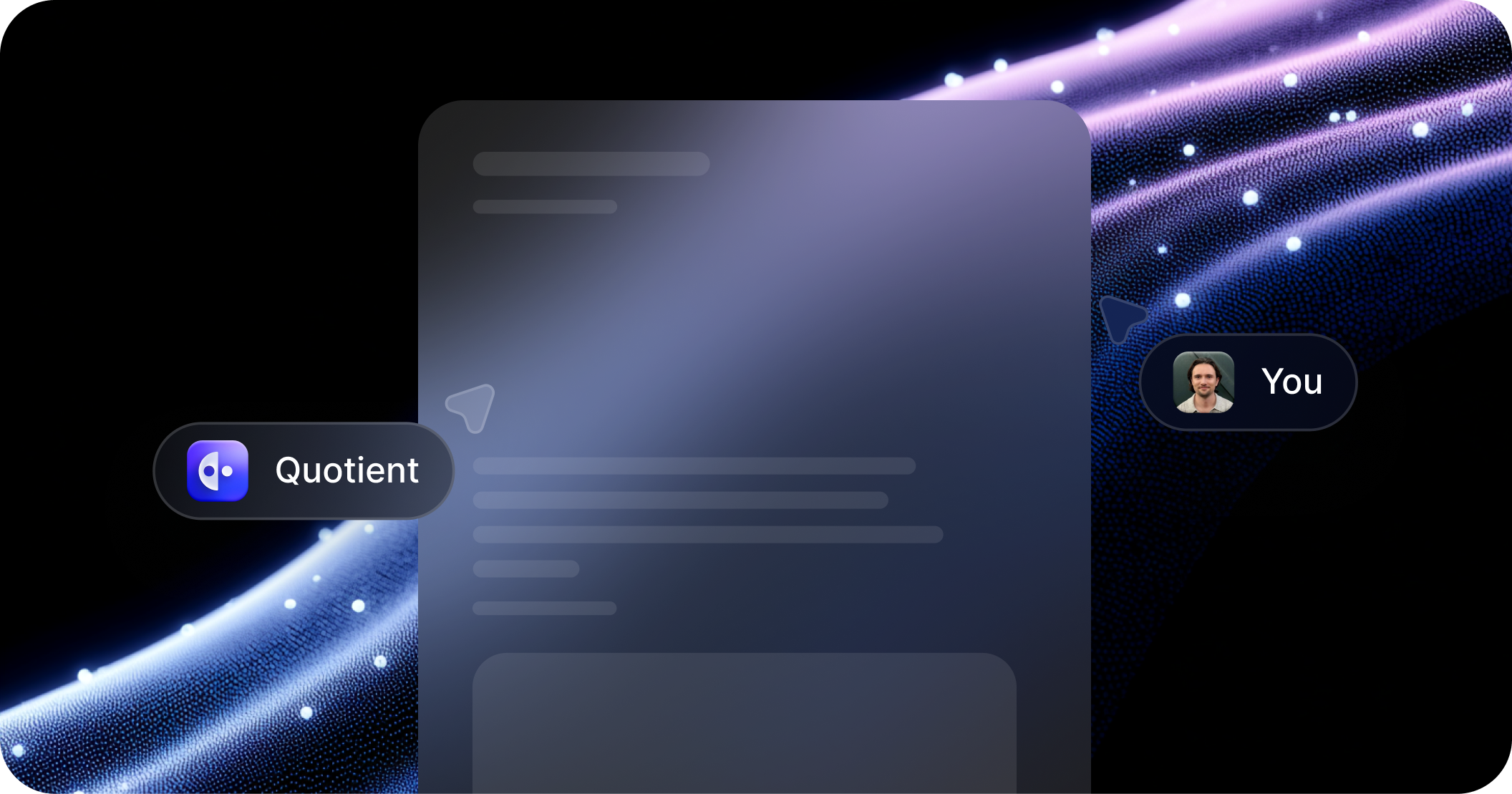 You can chat with Quotient in plain English, just like you would with a coworker. Tell it what you want, and it will help you get it done. If you've used products like ChatGPT or Claude, the experience will feel familiar.